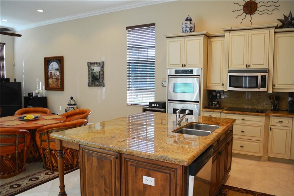 More than 100K in upgrades throughout, beautiful marble floors in common areas & baths, new wood floors in bedrooms, granite counter kitchen & baths, upgraded appliances & cabinets, upgraded baths, high ceilings with crown moldings, extended family room, large windows throughout, extended patio area with travertine stone, window sun protection treatment, rain gutters, alarm system with cameras, recently painted, manicured lawn and extensive landscaping, large yard for big pool & deck. Ready to move in!