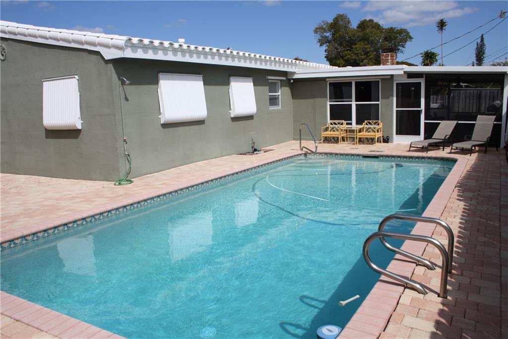 South Florida is calling you! Completely remodeled 3 bedroom, 2 bath pool home situated on a corner lot. Enjoy you days in the sun by the pool or rainy afternoons on the covered screened patio. On the rare cool evenings, you can sit by the fireplace in the family room. Decorated in light and bring colors for the true Florida feeling. This corner lot location offers extra parking on the paved side yard for a boat trailer or RV, just add a double gate for access. 3rd bedroom closet carries AC handler.