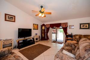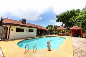 Stunning and immaculate single story 3 bedroom, 2 bath, 2 car garage home. This home is situated on nearly an acre of land. Large fenced yard with a pool, gazebo and fruit trees. Bright and airy with open floorplan great for entertaining. This home boast white tiles, vaulted ceilings, formal living room, dining room, family room, master retreat and Florida room. The master retreat boast a walk in closet and a slider to the screened patio. Covered patio overlooks the private backyard. This home roof is 2 1/2 years old, new A/c,(2 years old) and newly painted. NO HOA.. Located close to shopping, restaurants, West Palm Airport, major highways and the beach.