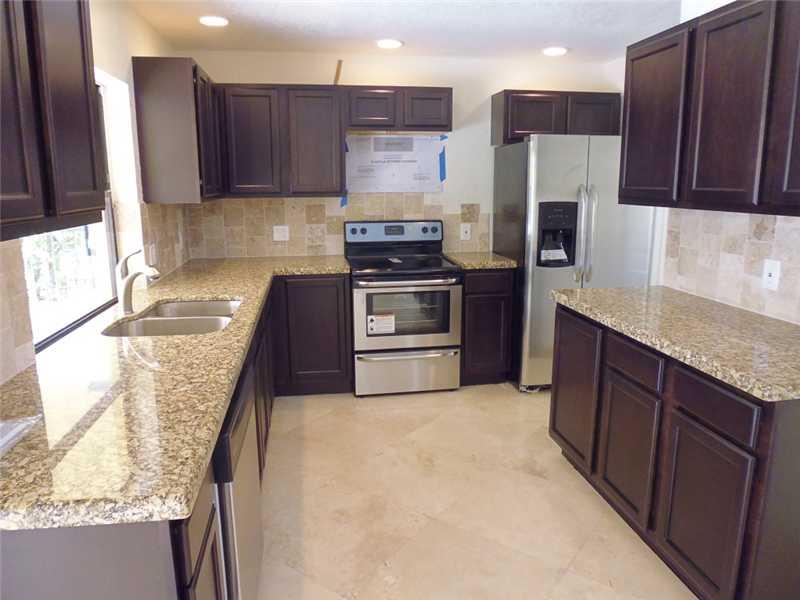 Another Stellar Home! Featuring 4 bedrooms, 2 baths, den pool and more! Gorgeous 22 inch travertine marble floors in living areas and wood in bedrooms. Brand new gourmet kitchen with dark wood cabinets, granite and stainless steel appliances. Living room features incredible built-in-wall entertainment center. Lush tropical backyard with pool, deck and plenty of greenery. 2 car garage. Fully landscaped and ready to be called home! Will not last.