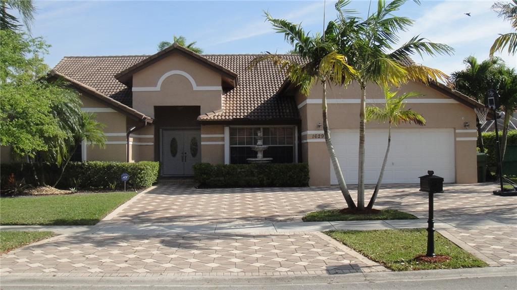 Stunning, upgraded corner lot home on lake with waterfall pool & circular driveway. Open living room with vaulted ceilings & French doors to patio. Eat-in Kitchen has upgraded cabinets, stainless steel appliances, granite tops & 4 large counter work areas including breakfast & buffet counters. Large Master with cabana bath, roman tub & separate shower with his/her walk-in closets. Central vacuum. Patio counter with sink & gas stove for entertainment. Ample back yard with Avocado, Mango trees & 30 palms.