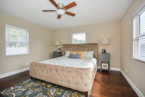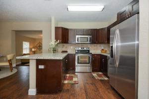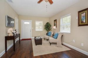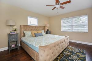 Beautifully renovated 2-story, 4 bedroom home has NO HOA & sits on a large fenced lot with a brand new roof, brand new roof, brand new central a/c, brand new hurricane-glass impact windows, brand new wood cabinet kitchen with granite countertops & tumblestone backsplash, including brand new stainless steel appliance package. Enjoy beautiful laminate wood floors throughout, split bedroom plan with master upstairs and all 3 guest bedrooms downstairs; there is a formal living room as well as family room, dining room and eat-at island bar off the kitchen; home features new fixtures throughout, inside laundry, all new electrical wiring and so much more? All work permitted with warranties. This home is amazing. All measurements must be verified by buyer. Furniture does not convey.