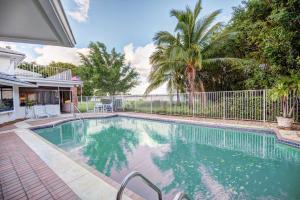 Cul de Sac two story cottage charm with Premium Water Views! This home in Presidential Estates at the new Banyan Cay Golf Club right in the heart of West Palm Beach offers two homes in one. This home was owned by well known restaurateur built for entertaining. The bright great room with 20 Ft ceilings and spectacular view on the lake, an attached guest house and a 50' loggia w/ built in barbecue overlooking the lake and pool makes this home very special. This home sits on over half an acre and offers 5 bedrooms, and 5 baths. The very private master suite w/ bay window and french door w/ sitting/ office area and private deck overlooking the lake is unique & has another special feature... The other bedrooms are off the family room and pool and offer total privacy. See more... for guest hous