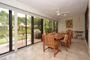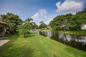 Immaculately maintained and tastefully updated 2 bedroom/2 bathroom, spacious corner villa with picturesque water views. Second bedroom has a private screen enclosed courtyard. This home features new roof, gutters and shutters in 2013, new garage door with opener and new hot water heater installed in 2015. New A/C, updated kitchen with granite counter tops, hurricane impact rear sliders, washer/dryer, renovated master bathroom, attic ladder and fan all added to home in 2008. Active clubhouse, pool/spa, tennis, billiard/card room, BBQ area & pier. Association states this is a 55+ community. PETS welcome!
