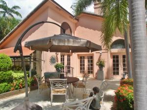 WELCOME TO YOUR OWN SHANGRI LA! Located on an over 1/4 acre incredible lot! When you are entertaining around the huge pool, magnificent Gazebo or special BBQ area your guests will think that they are in an intimate resort! This unique home sits on what is probably the finest and most impressive lot in all of Boca Pointe! The house has been quality updated in exquisite taste. This is a rare La Palma model with a green house wall family room off an impressive kitchen with unique Quartz counter tops. The master suite is on the first floor with an absolutely breath taking master bathroom with onyx counters and an amazing walk-in closet. There are 2 other master closets.2 upstairs large bedrooms share an over sized 2 sink bathroom and a loft.
