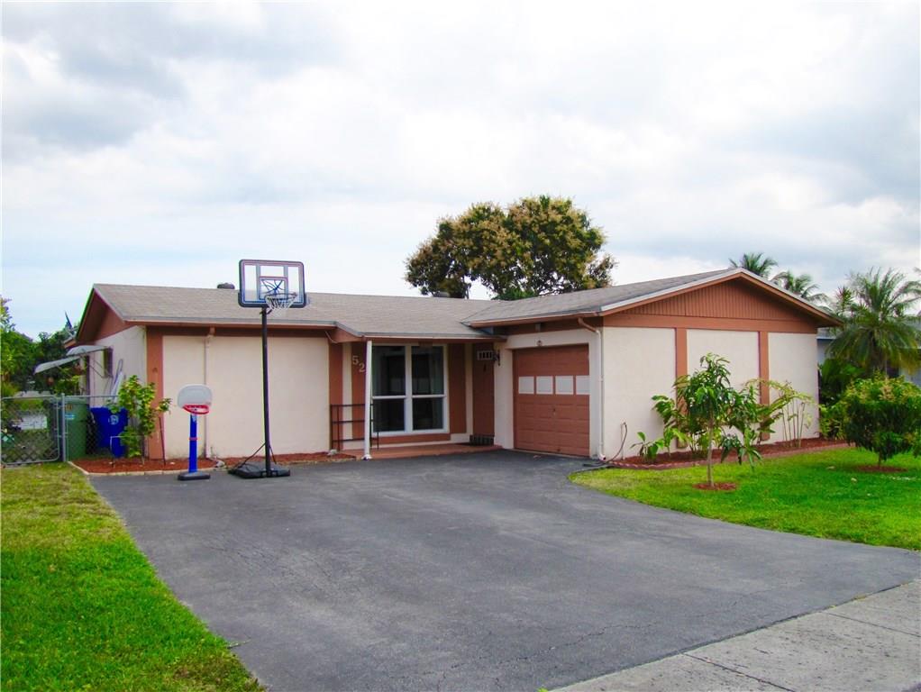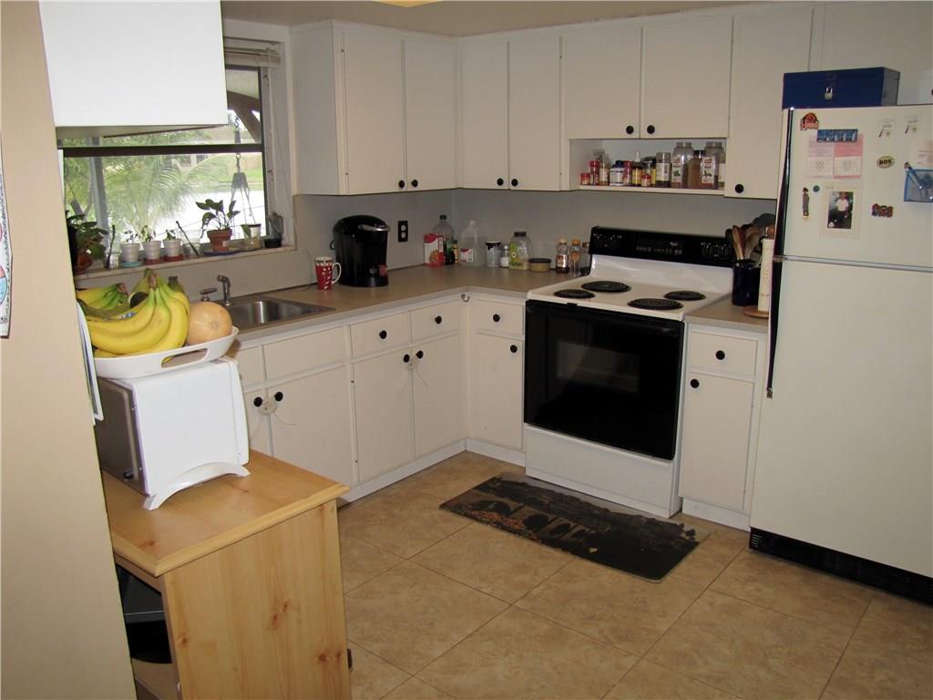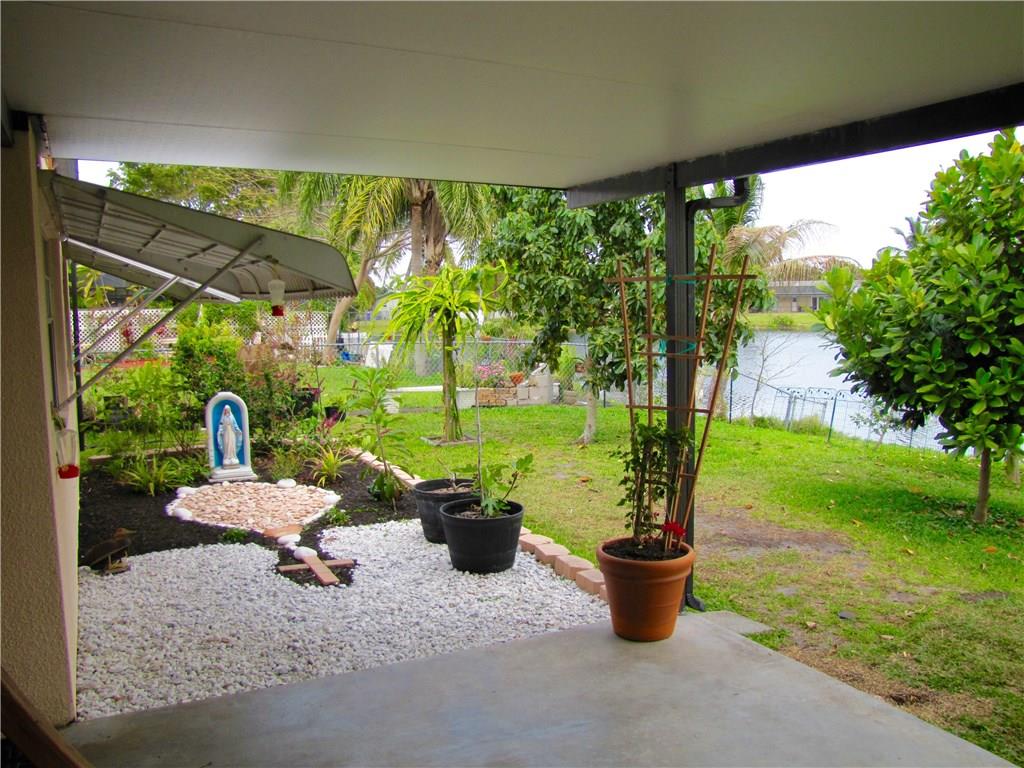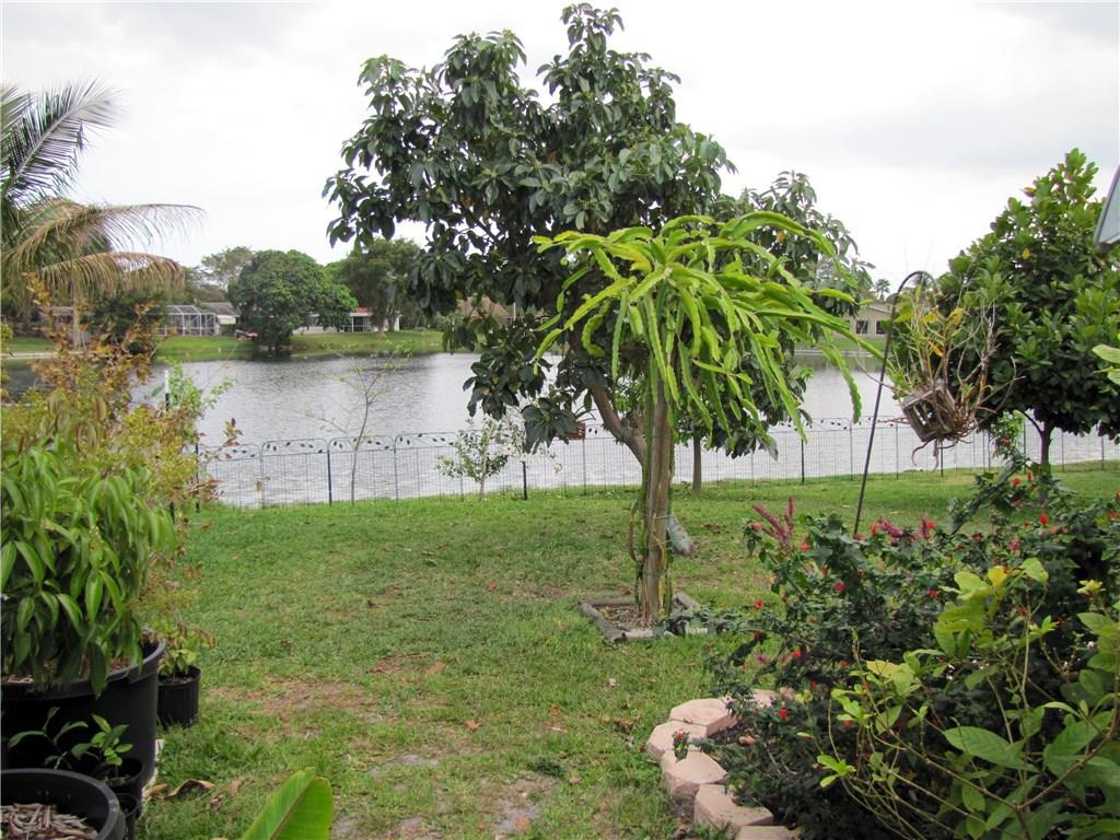 Welcome to your home oasis! Sturdy construction in a well-established neighborhood with NO HOA. True 3 bedroom, 2 full baths and a garage on a fresh-water lake. Fruit trees! Avocado, Carambola, Papaya, Jackfruit, Guanabana, and more! Covered backyard patio and window views of the lake. New hurricane windows in much of the house. Newer tile throughout. Kitchen pantry, hall closets, master bedroom walk-in closet, ladder access to attic storage. Window awnings, fenced yard.