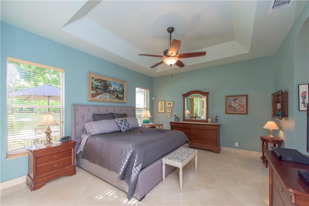 Upgraded, Turnkey 4 Beds, 3 Baths Waterfront Dream Home! Large Marble Floors Throughout. Gorgeous Master Bath w/Separate Tub, Dual Sinks & Frameless Door Shower. Large Open Kitchen w/Updated Granite Counters, Stainless Steel Appliances & Custom Wood Cabinets. Breakfast Area & Living Room w/Water Views, Crown Molding, Pavered Patio w/Auto Roll Up Awning & Accordion Hurricane Shutters, Great Curb Appeal, Beautiful Stonework, New A/C & Water Heater. HOA Includes Clubhouse, Lawn & Alarm. A-Rated Schools!
