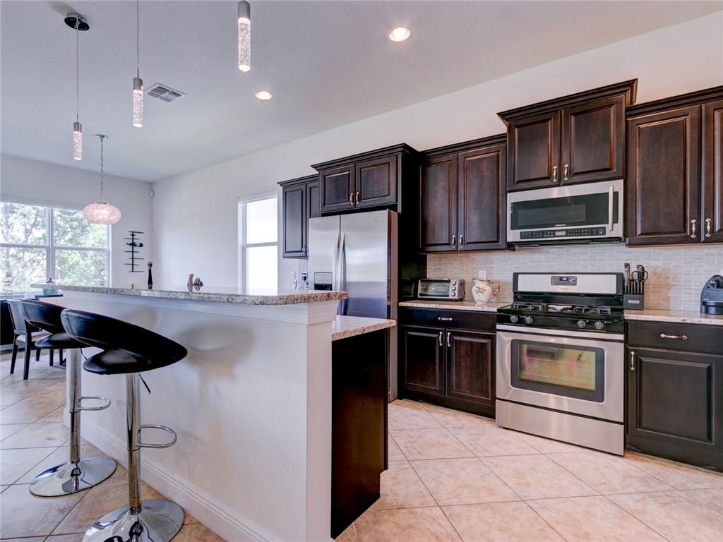 Gorgeous 4 bed/3 bath home in the desirable Heron Bay community Somerset. Amazing 2 story, Impact Windows, Natural Gas appliances, Low utility bills, Laundry Room upstairs, Huge Walking Closet, 4th room downstairs with full bathroom. Home offers large eat in kitchen w/granite counters, SS appliances, island & large pantry. Updated master bath has dual vanity, walk in shower. Backyard offers gorgeous view of the lake from covered patio. Community has 2 beautiful and big Club Houses, 12 tennis courts etc.