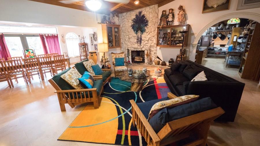 "SUNSHINE RANCHES" 3 Bedroom 2.5 Bath Beautifully Updated Gem! Gated Entry leads you to 2.31 Net Acres Surrounded wth privacy hedges. Impeccably Maintained! 3400+ SQ.FT. a/c. wood burning fireplace, ext. recently Painted, Updt. M Bath and 2nd full bath, Updt Kitchen and Appliances with Sears appliance Saturnia Floors, Split Zone A/C, Fully Fenced, New Septic & Drain, 3 Large A/C Office/Livable Moveable Sheds, Greenhouse, (40x60) raised stage for entertainment, park-like backyard atmosphere
