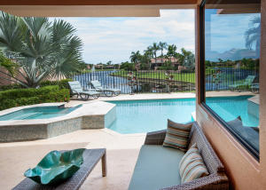 Quality abounds in this 4 bedroom, 3 bathroom exquisite home on oversized lot with a unique side courtyard for extra outdoor space. First floor has hurricane impact sliders as does the master bedroom. Luxurious attention to detail with stone tile flooring, upgraded newer carpet upstairs. Kitchen has been redone. There is an indoor wet bar with refrigerator overlooking long lake. No step down into the living room. Popcorn ceiling has been removed; all ceilings are smooth for a lovely sleek look. There is a new water heater. All bathrooms have frameless shower doors. 2 new A/C units. Remote on wall to operate electric shades. These are just a few of the touches and extras this home has to offer. Gorgeous pool and hot tub overlooking long lake views.