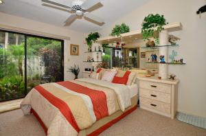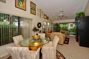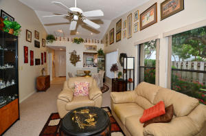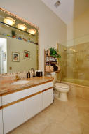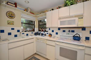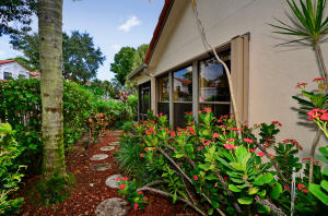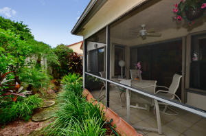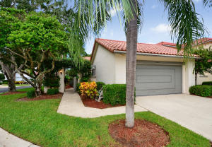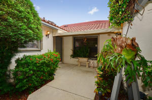 Charming two bedroom home situated on a private corner lot. Bright open floor plan offers vaulted ceilings, split bedrooms & lots of natural light. White kitchen with pass through to dining room. Master bedroom offers sliders to back yard, vaulted ceilings, walk in closet. Updated master bath with tile floors, marble top vanity, updated lighting & roman tub/shower with seamless glass door. Guest suite also offers updated bath. Tropical courtyard entry lushly landscaped with screened tiled patio. 2CG. Hurricane shutters, barrel tile roof replaced in 2006, AC & garage door approx 2010. Wimbledon offers a 24 hour manned gate, lakefront walk/bike trail, comm pool/spa & close to Greenwise Publix, shops, restaurants, I95, Turnpike & the best A rated schools. One pet up to 50lbs or two small.