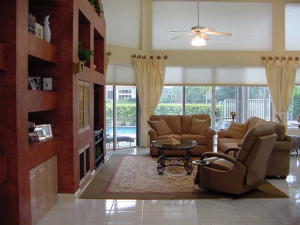 A rare find - southern exposure on the lake AND a 3-car garage! Light, bright & open with serene lake views from the moment you enter, this charming one-story home offering 4 bedrooms, 5 1/2 baths and a 3-car garage features volume ceilings; neutral tile & carpeting; a built-in office in the 4th bedroom; Living Room wet bar; his & hers Master Baths; walk-in closets with custom closet design; French doors; skylights & extra high hat lighting; central vacuum system; newer air conditioning systems; a long driveway and an inviting beautiful stone-pavered patio with a screened covered area & an open area with an oversized pool on the lake. Relax & enjoy the view!