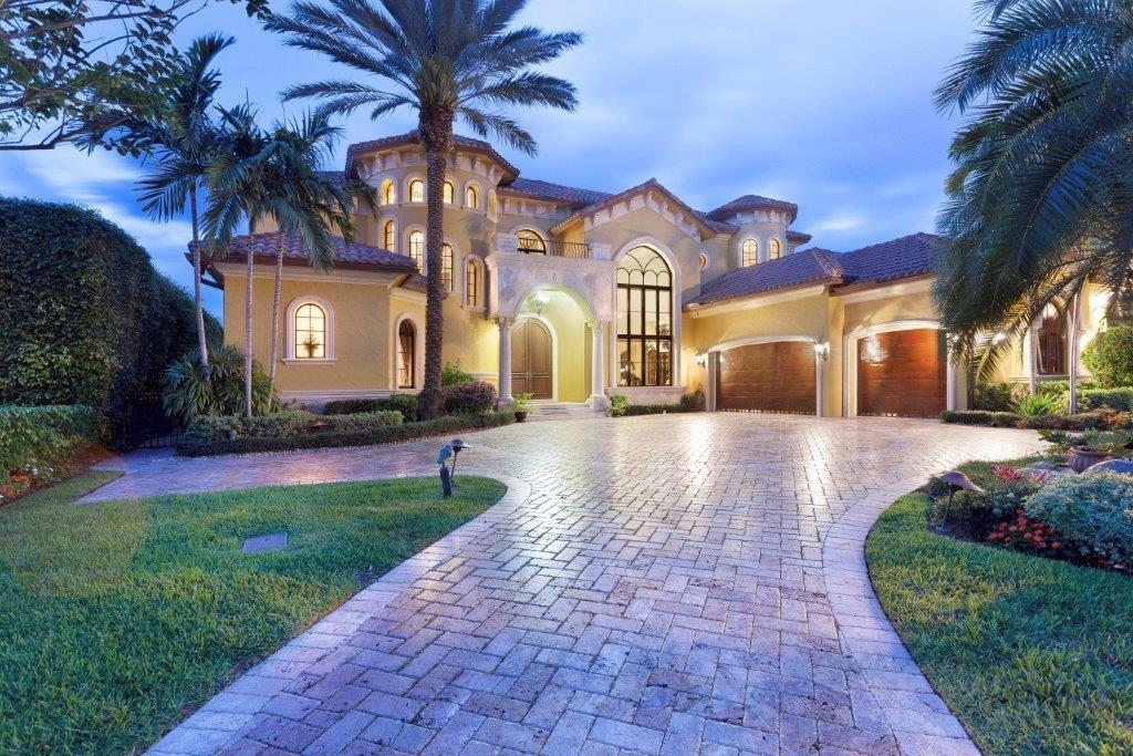 Giving the feel of a Mediterranean resort villa, this trophy Intracoastal estate is an impressive showplace for indoor/outdoor entertaining and features a resort-style pool patio and yacht dock with lift. By the majestic turret staircase, the foyer enters the stunning 2-story living room with palatial fireplace and window wall opening to the waterside loggia with fireplace. Media room. Sumptuous master suite sprawls over half the upper level and opens to a loggia with expansive waterway view.