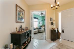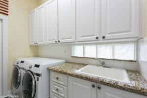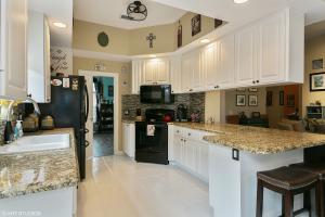 Completely Renovated Oakmont model, 3 bed/2 bath plus a den overlooking the lake. The open and airy family room features, a wall unit,new porcelain wood tile floors with sliders that lead to a screened porch and a lush landscaped fenced backyard. Owner suite with slate flooring, his and her baths, walk in closets, and additional sliders that lead to a private patio. Spectacular renovated open kitchen with new granite counter tops, new back splash, and newer appliances. Home has been freshly painted, new carpets, accordion shutters, new washer & dryer and a new bathroom. Luxury style community pool, tennis courts and community clubhouse. A home warranty will be provided to the new homeowner.