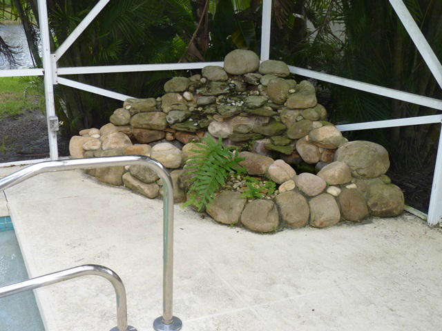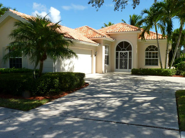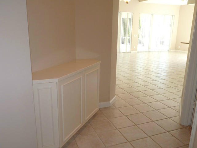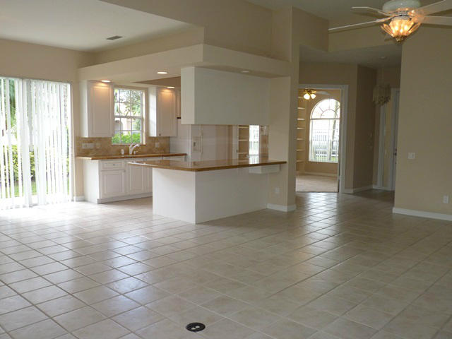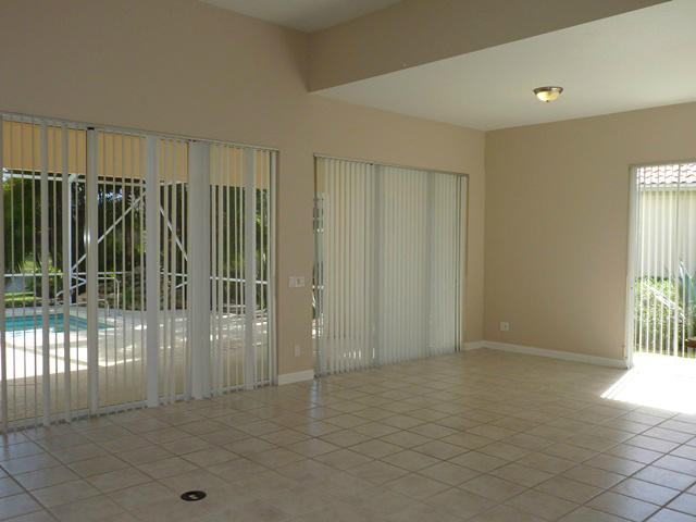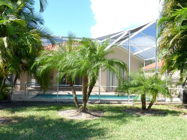 Fabulous pool home sitting lakefront on an oversized pie shaped .23 acre lot. Foyer entrance to open living room with high ceilings, built in entertainment center and 2 sets of sliding glass doors to the covered/screened pool patio. All tiled throughout except bedrooms. Kitchen features raised panel cabinetry and granite counter tops with window over the sink. Master bedroom also has sliding glass to the patio, custom mirror, walk in closets, roman tub, separate shower and his/hers bathrooms. Split bedroom plan has bedrooms 2 & 3 on the other side which has bathroom 2 across the hall. Bonus room with double door and built in cabinetry could be a 4th bedroom, office, library or den. Full size laundry room with wash sink. Unique community features its own Town Hall with bank & shopping.