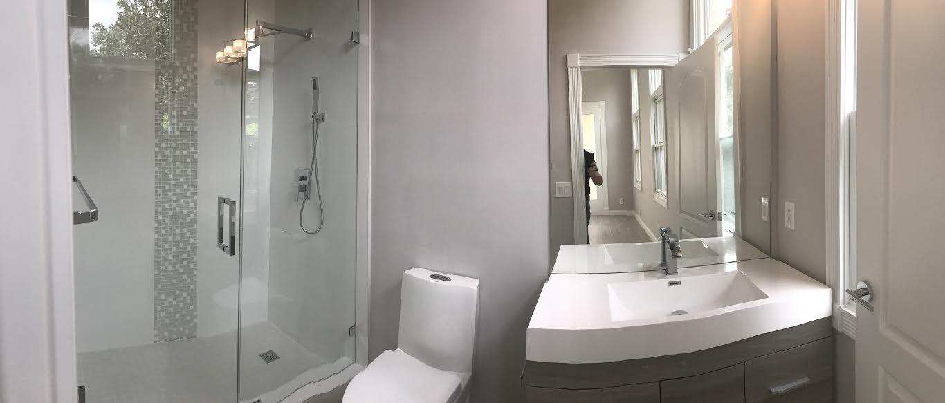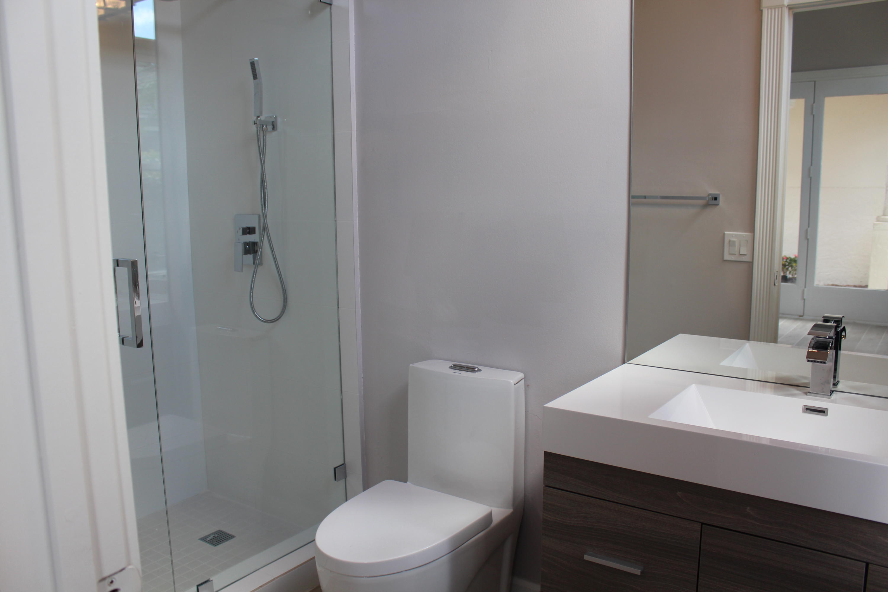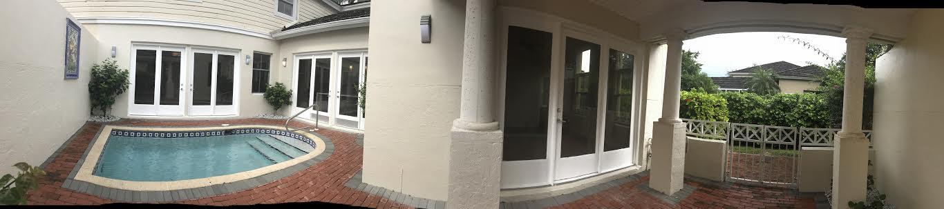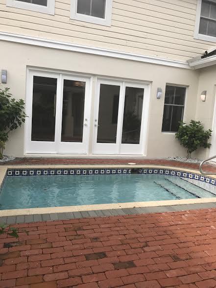 This spectacular two story home has 3 bedrooms and 3.5 bathrooms. It was just completely remodeled with the finest contemporary look in gray and white throughout. New kitchen with white quartz counter top, 8 foot long island and upgraded stainless appliances. Porcelain tile floors. All bathrooms feature European style modern vanities and frameless shower doors. French doors throughout provide a view of the pool that is the centerpiece of beautiful brick paved private courtyard. The best of the best. Move in ready.