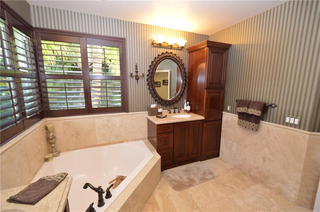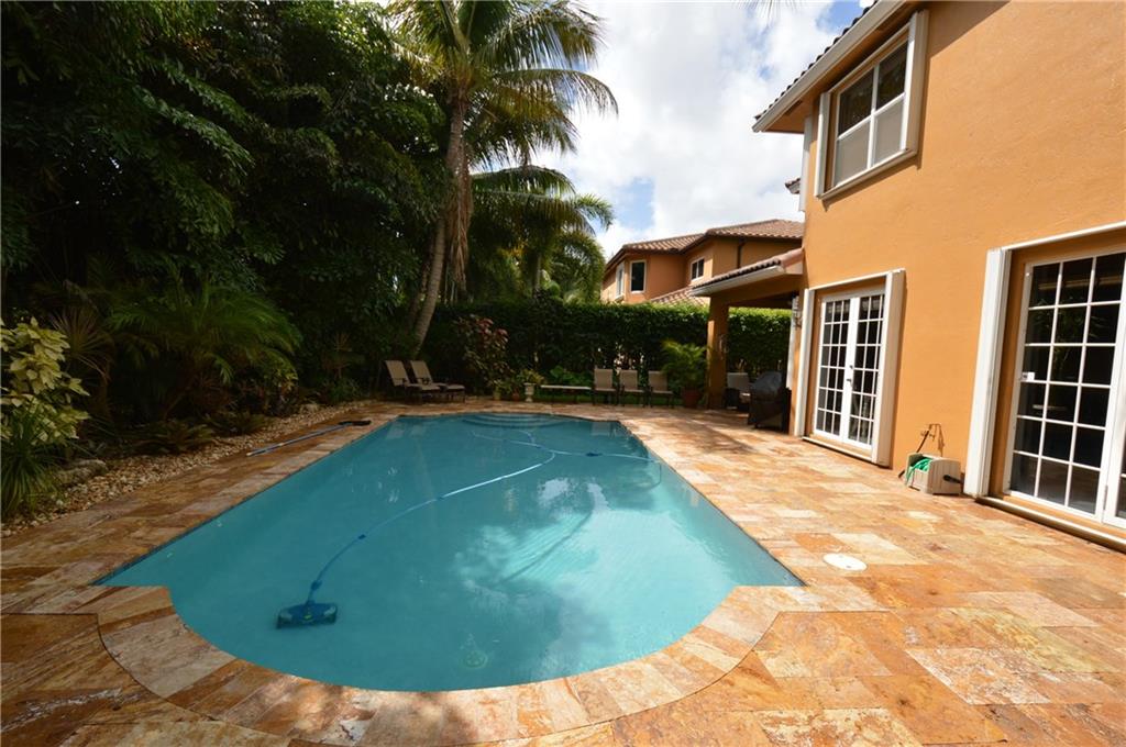 Immaculate 4/3 pool home located in Boca East Estates on quiet cul de sac. This show home features: New custom wood kitchen w/tons of pullout drawers, stainless steel appliances/hood, quartz/granite counter tops, custom wood wall unit with surround sound, crown moldings throughout, marble master bath, 20 ft ceilings, new travertine marble pool deck, all wood floors on second floor, 2nd story patio, California closets, accordion shutters, French doors, wood burning fire place & Chicago Brick paver driveway