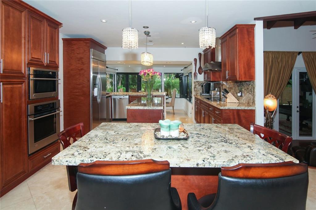 Highly sought after Grove Estates. This magnificent home has been completely redone from top to bottom. Features include 4 bedrooms plus a den / 4.5 baths, marble throughout social areas, wood floors in bedrooms, granite and stainless appliances in kitchen. The backyard is a tropical oasis with an inviting pool that is surrounded by 2400 sq. ft. of travertine marble. All of this on a builder's acre. This is a must see that won't last.