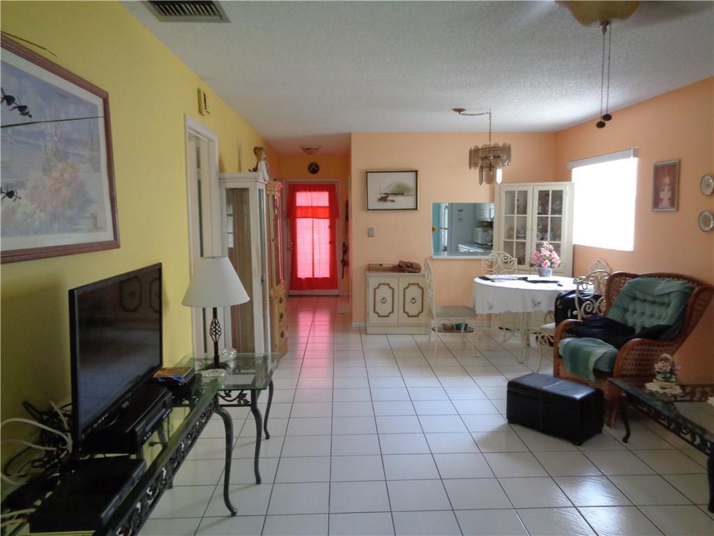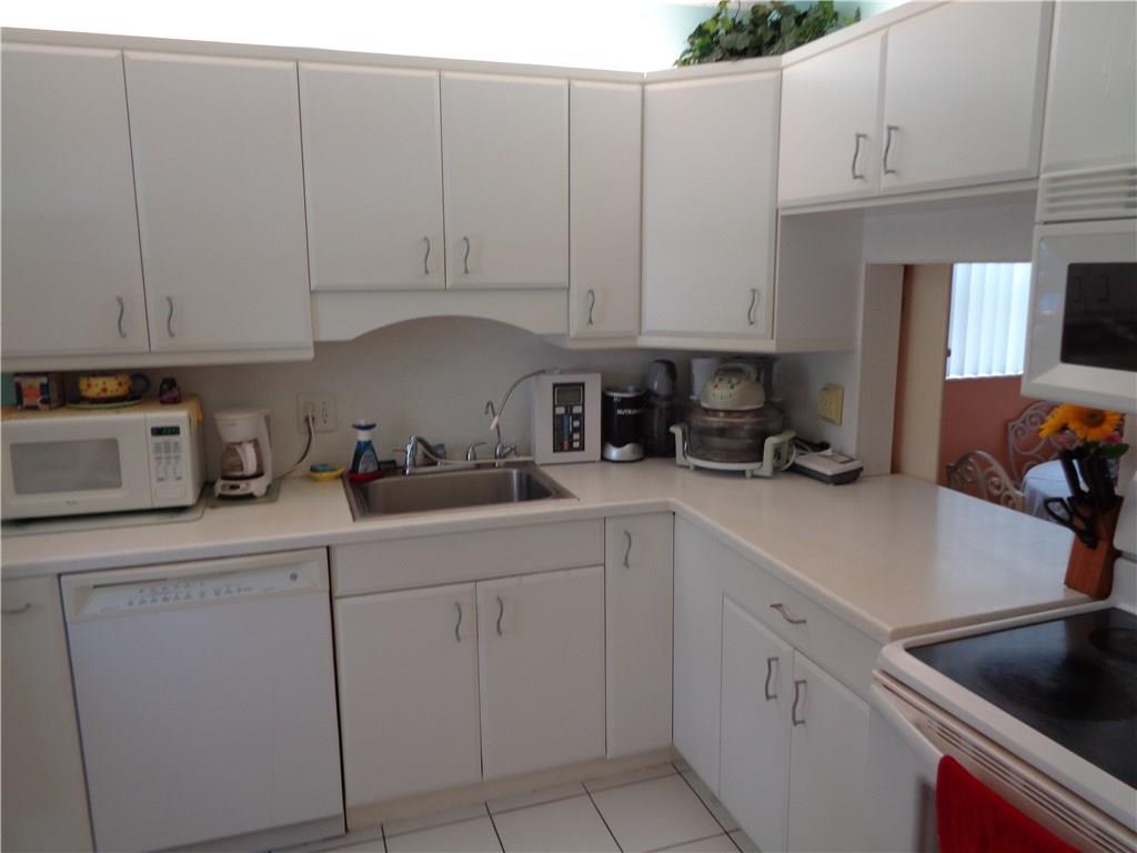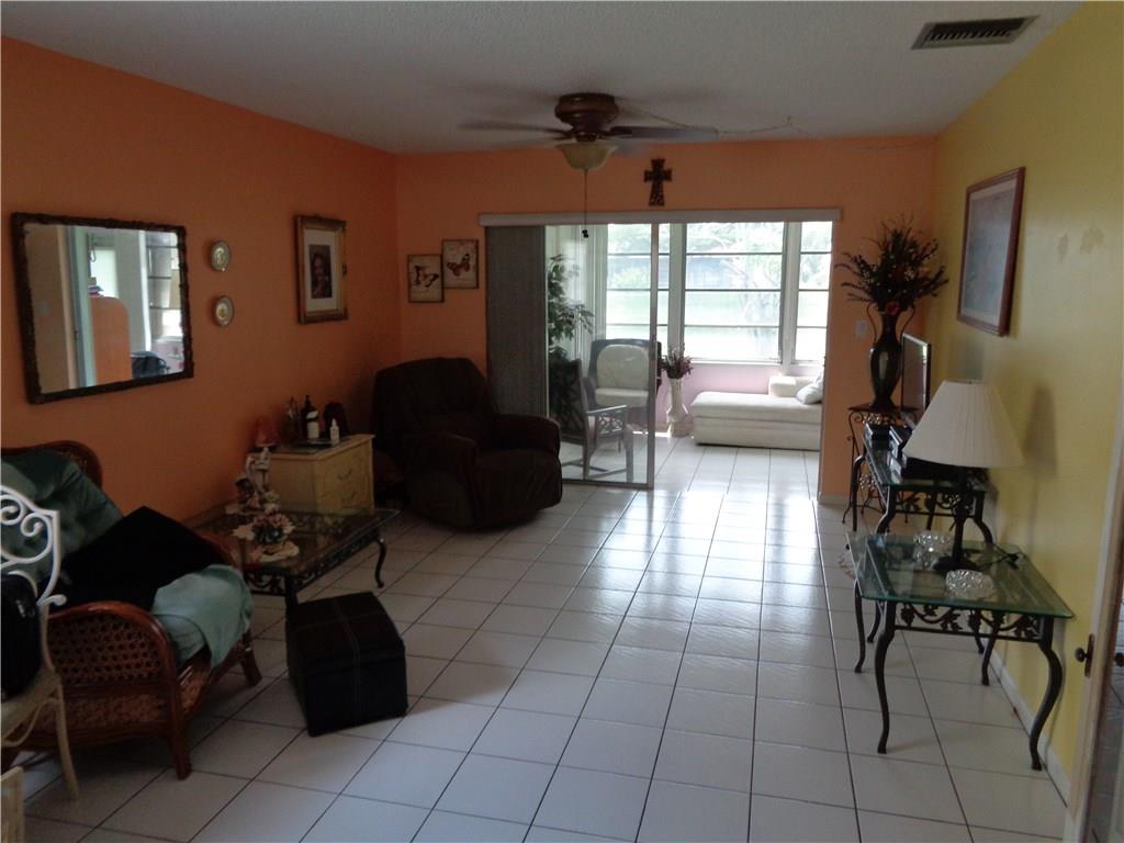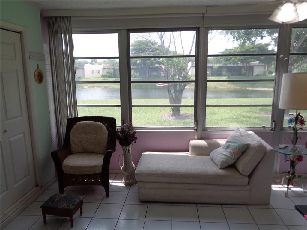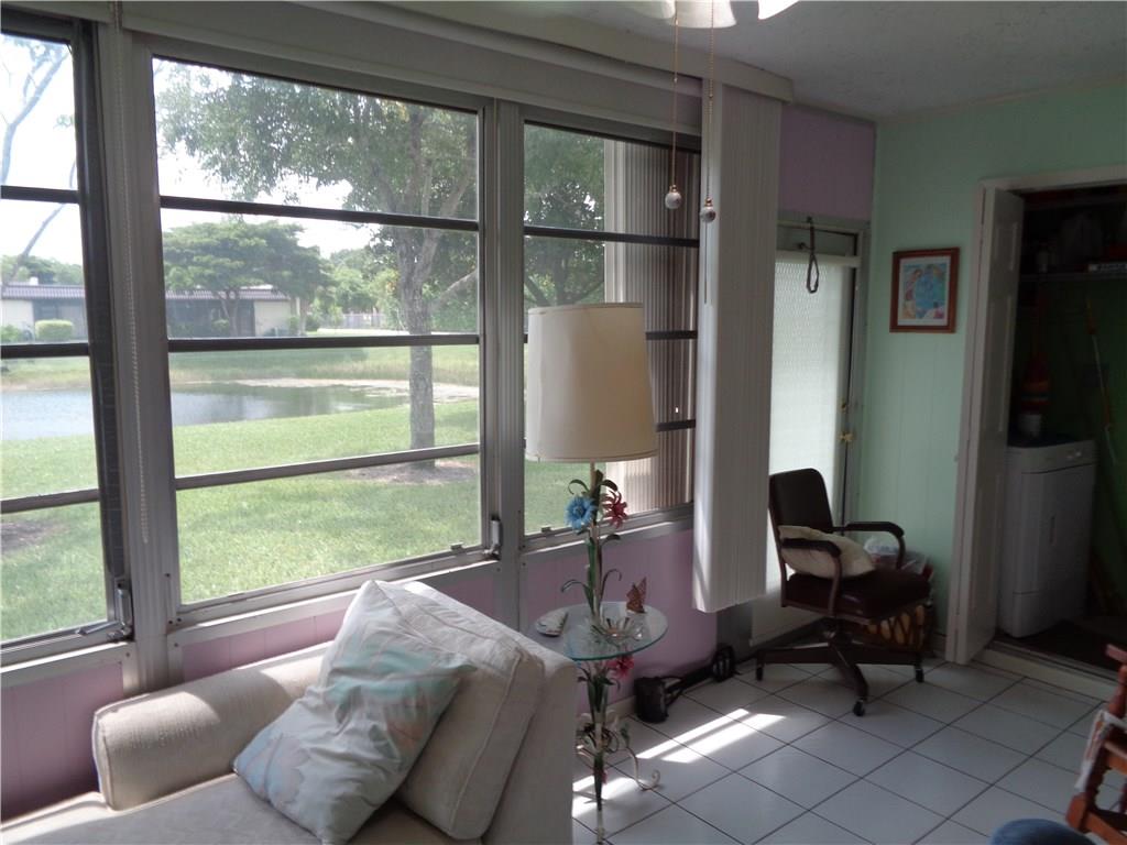 Ground floor corner Villa on the water with small pets allowed. All tile floors, enclosed patio, full size W/D, newer kitchen cabinets with Corian counters, updated baths, all appliances in excellent working condition. Accordion hurricane shutters. Short walk to satellite pool. One pet allowed up to 30 lbs. Courtesy Bus 2 days a week to grocery, malls, shops, etc. Very serene location. Come relax on the lake in your large air conditioned patio.