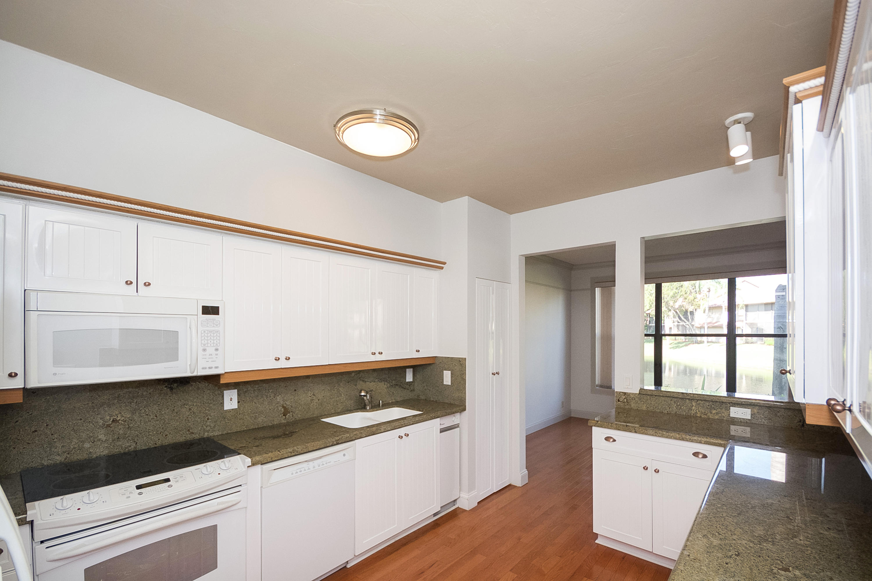 Come see this impeccable 3 bedroom townhome in central Boca Raton! The tranquil lake views and private setting will make you feel right at home. This ground floor unit features a 1+ private garage with direct building access. No stairs required! Enter this pristine home to see sparkling hardwood floors throughout the living room, kitchen and master bedroom. The updated kitchen includes granite counters and beautifully detailed white cabinets. Schedule your showing today!