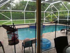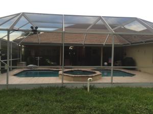 Beautiful well maintained home in much sought after Boca Winds. Screened pool-spa with south exposure and baby gate available. Large fenced in yard with no rear neighbors. Recessed lighting throughout, split bedrooms, upgraded cabana bath with quartz countertops, plantation shutters, dark waterproof laminate floors, new water heater, newer dryer, surround sound throughout, large laundry room with separate sink, huge master bath with dual sinks, roman tub, walk in shower and separate water closet. Walk to excellent schools. Tons of shopping, restaurants and entertainment a few minutes drive.