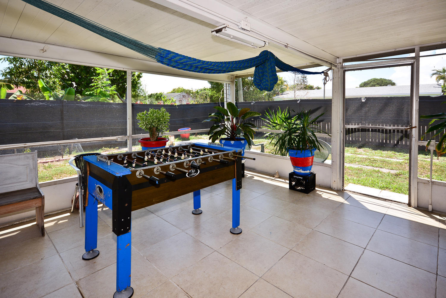Two bedroom one bath home close to downtown West Palm Beach, schools, shopping and restaurants. Open floor plan. Clean and well maintained. Tiles throughout. Central A/C. Large screened in patio in the back. Fully fenced yard. Great opportunity in this area, a must see!