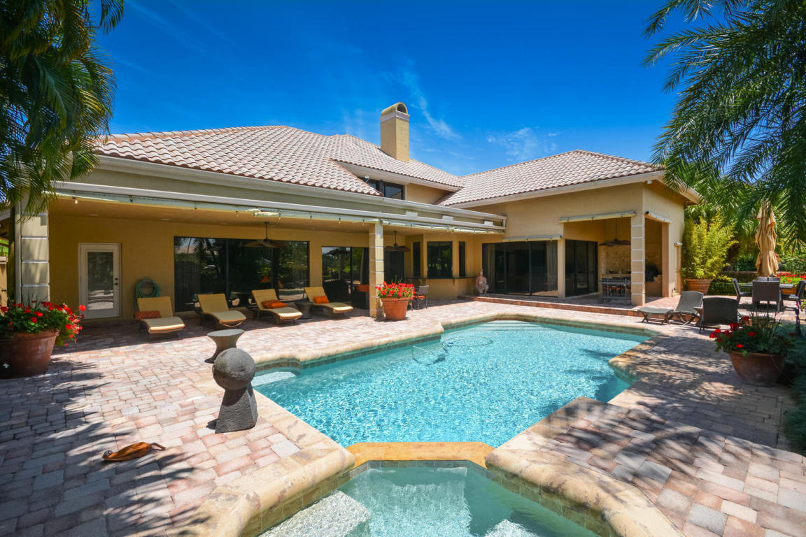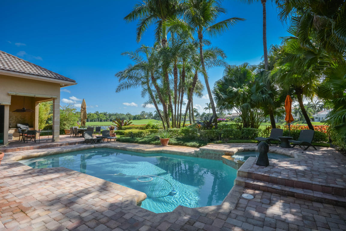 Elegant custom two story estate with dramatic formal living room, entertainment bar, formal dining room, chef's kitchen with center island and stainless steel appliances, opening to breakfast area and family room, spacious master suite and 2 additional bedrooms downstairs and library with rich wood details. Upstairs features loft sitting area and two guest suites. Outdoor entertainment area and resort style pool overlooking golf course view. The information herein is deemed reliable and subject to errors, omissions and changes without notice. All measurements are approximate.
