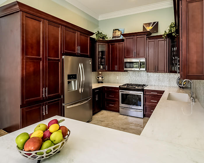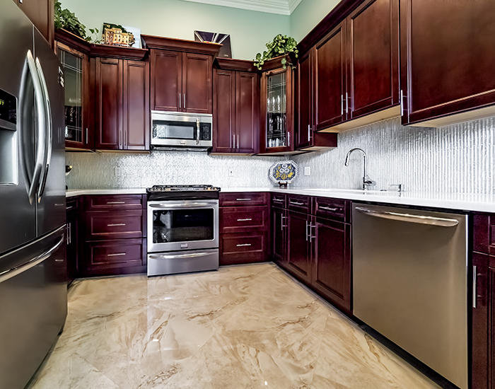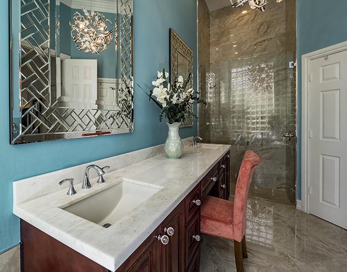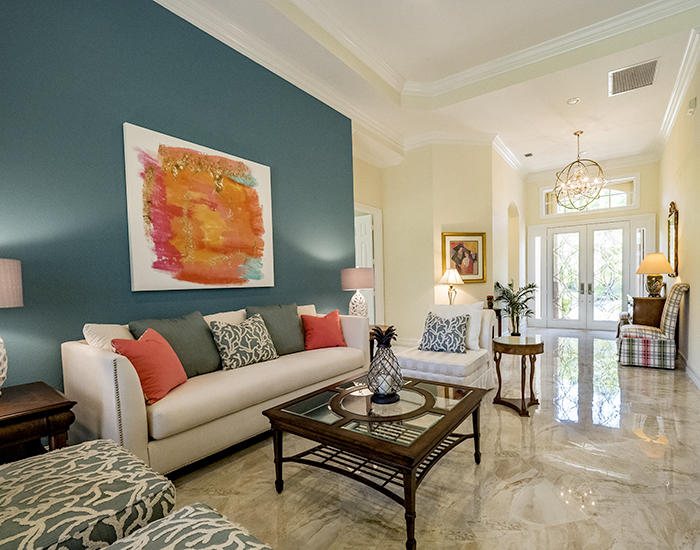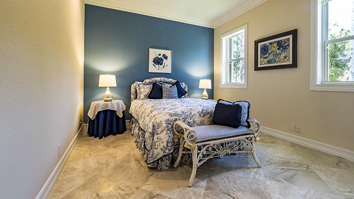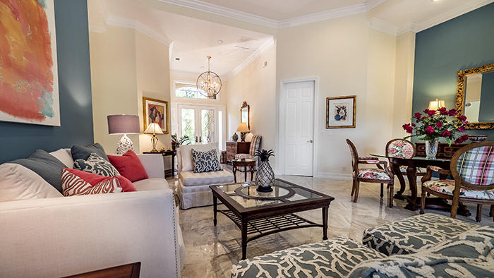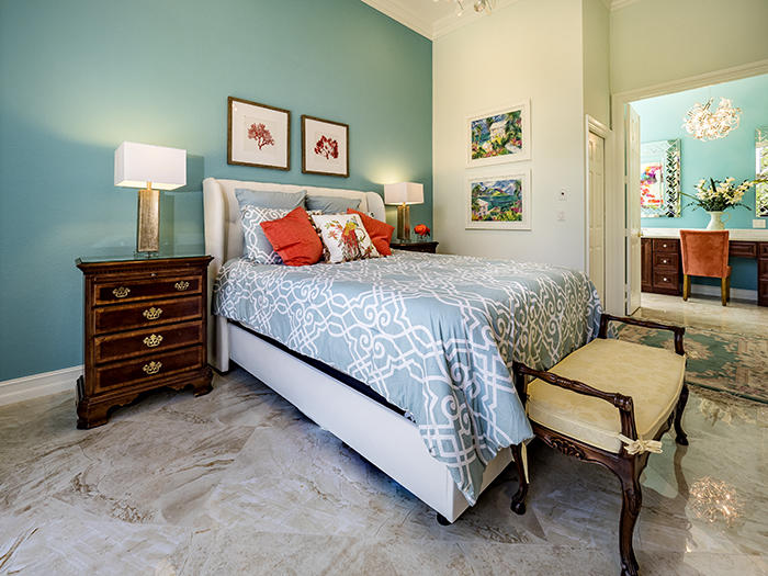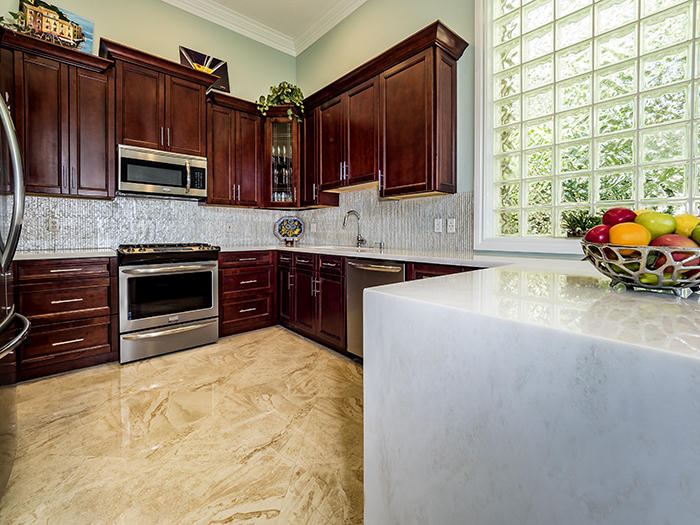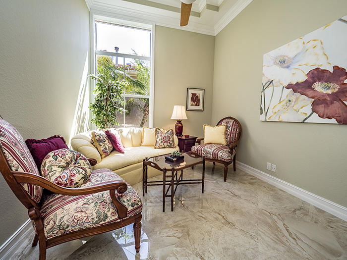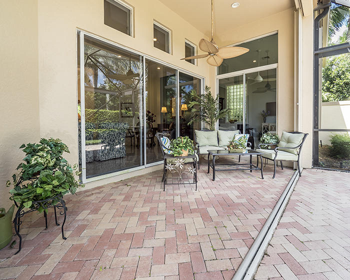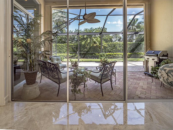 Light, bright, elegant in a contemporary/eclectic style created by a talented architect. This completely remodeled home boasts new 24"x24" porcelain floors on the diagonal with a high gloss finish ($65,000), a completely renovated kitchen with stainless Frigidaire Gallery series appliances, quartize counters with dramatic waterfall edge, glass tile backsplash, custom cherry cabinetry with sleek hardware and handsome moldings. Remodeled baths with mahogany cabinetry and sleek quartzite counters, frameless showers. Even the laundry room features quartzite counters and new stainless Samsung washer and dryer set. There are two layers of crown moldings and opulent 7" base moldings throughout. Fully scr. lanai, accordian shutters. Fabulous location within Ibis. Also available furnished.