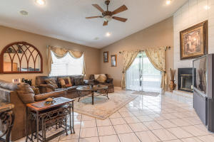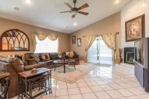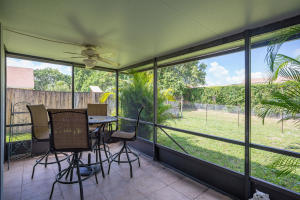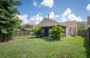 Don't miss this great home in the popular and sought after ''Trends of Boca''. 3 bedrms, 2 baths, split bedrm floor plan with a full 2 car garage. Large open floor plan. This home boosts a working fireplace, updated and exceptionally large eat in kitchen. Remodeled guest bathroom. Many updates: roof 10 yrs., a/c 7 yrs., water heater 3 yrs, w/d 5 yrs, kitchen 8 yr. All rooms are wired and have stereo speakers in the ceiling. Screened patio was enlarged to 9x18 and built in 1995. The home has accordion shutters on ALL openings and has a hurricane rated garage door. The front window is an impact window. Laundry is under a/c. Lots of closet and storage space. Lg attic entrance in garage with pull down stairs. Separate tool shed in large, completely fenced in backyard.