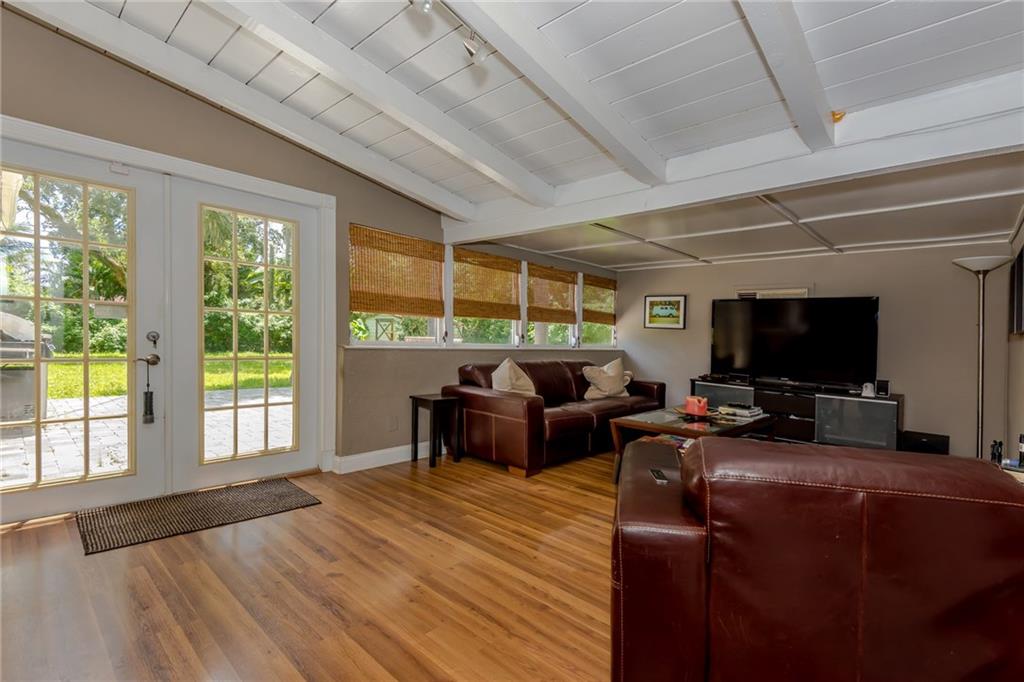 Welcome to Riverland community where you are just a short drive from highways, downtown & the beach. This home is move in ready & features 3 bds / 2 baths + a den * Beautiful vaulted ceilings with exposed wood beams * Lots of natural light * Laminate floors * Kitchen is open to a den & has stainless steel appliances & granite countertops * Separate laundry room with a storage* French doors from the den are leading to a spacious fenced yard with a patio* Newer roof * Sprinklers are on well. Priced to sell!