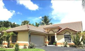 Welcome Home! This 4 Bedroom, 2 Full Bath Home has Mature Tropical Landscape in the Heart of Parkview Place. This Home features Vaulted Ceilings, updated Bathrooms, Eat in Kitchen Dining and Ceramic Tile throughout. Walkouts to the Lanai from the Master Bedroom and Living Room to Expansive backyard with Sugar Apple, Tropical Plum and Mango Trees. The 2 Car Garage has a Hurricane Impact Door and combination for easy keyless entry. New Barrel Tile Roof in 2014. Enjoy the Community Pool and Lovely Neighborhood. Close to Shopping, Parks, Amphitheatre and Palm Beach International Airport. Check out the Virtual Tour!