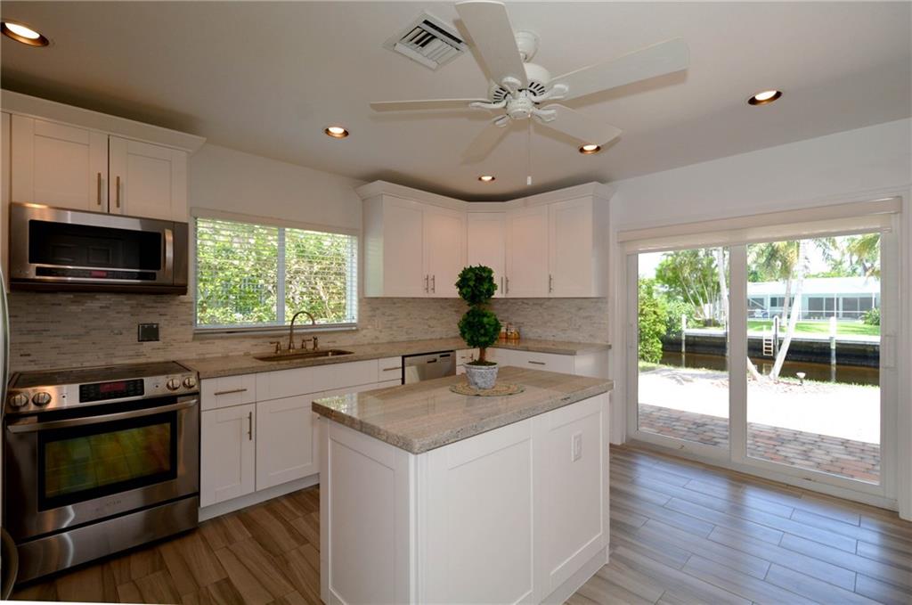 Newly updated 3 bedroom, 2 bath waterfront home. Ocean access, 2 car garage, open living space, gorgeous new kitchen w/stainless appliances and island, new master bath, updated guest bath, new tile in living area, new AC, impact windows and doors (including the garage), new paver patio in the back, popcorn ceilings removed, smoother walls, new alarm system with security cameras, recessed lighting, new sprinkler system. Wonderful neighborhood. Room for a pool. One-Year Home Warranty. EASY TO SHOW!