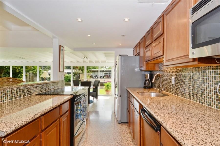 Canal front home with 65' on the water with ocean access and no fixed bridges. This 4/2 in Lauderdale Isles features a garage, vaulted ceilings, impact windows, front and back patios on a quiet dead end street. It has remodeled kitchen and bathrooms with a bright Florida room overlooking the water. A great home for entertaining.