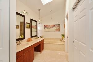 Once you enter through the charming courtyard, you will feel right at home in this beautifully updated and very well maintained one story 3 bedrooms 2 bath home with a pool and is lakefront.The elegant living and dining rooms are accented with lighted art niches and cathedral ceilings with skylights. The stunning upgraded granite counter tops accent the bright and airy open kitchen which looks out into family room and breakfast bar. The luxurious master bedroom retreat features a view of the pool and a partial view of the lake. A private bathroom complete with his and hers vanities, large garden tub and separate shower, and a large walk-in-closets. This popular Cayman model has a split bedroom floor plan. The guest bathroom is all updated with a new vanity and a vessel sink.