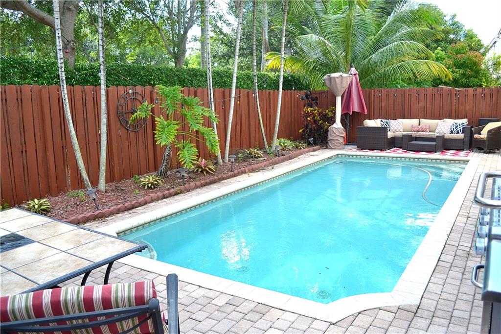 Stunning 4/2.5 pool home located in desirable and gated Riviera Isles, shows like a model! Designer touches through out make this a must see. Interior features upgraded custom kitchen cabinets, granite and stainless appliances. Large neutral tile on first floor with decorator inlays, quality wood laminate 2nd floor and stairs. Exterior features include large salt water pool, upgraded landscape, fenced yard, new A/C system. Community has all the amenities fitness, resort style pool and more!