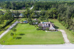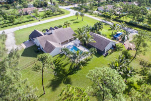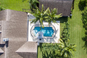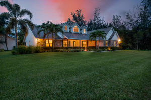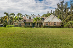Welcome home... This Acreage GEM offers country living at its best!... Boasting a 4/3/2 main home, 2/2 guesthouse, superb yet quiet LOCATION, PAVED ROAD, CITY WATER and a spectacular heated, salt water courtyard pool. This well maintained home is bright and sunny with warm neutral colors throughout. Entering through the front door brings you into a fabulous open floor plan that overlooks the screened lanai, pool and 51 x 33 pool deck offering over a 1700 sqft of outdoor living space. Passing through you will discover a formal dining room, den, spacious family room with elegant wood burning stone fireplace, soaring 19' ceilings, expansive kitchen with granite, 42 inch cabinets galore, breakfast bar, pantry, Kenmore appliances, large 18'' tile and dining area. Entering the master suite