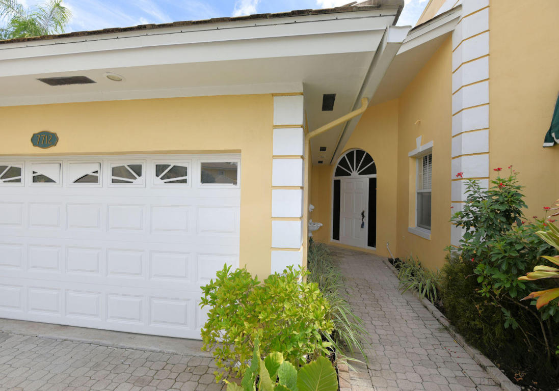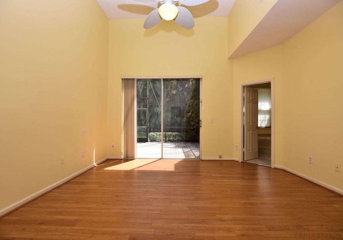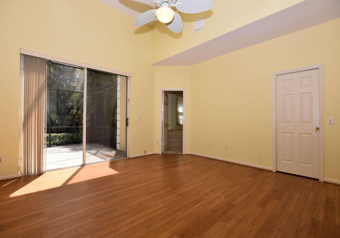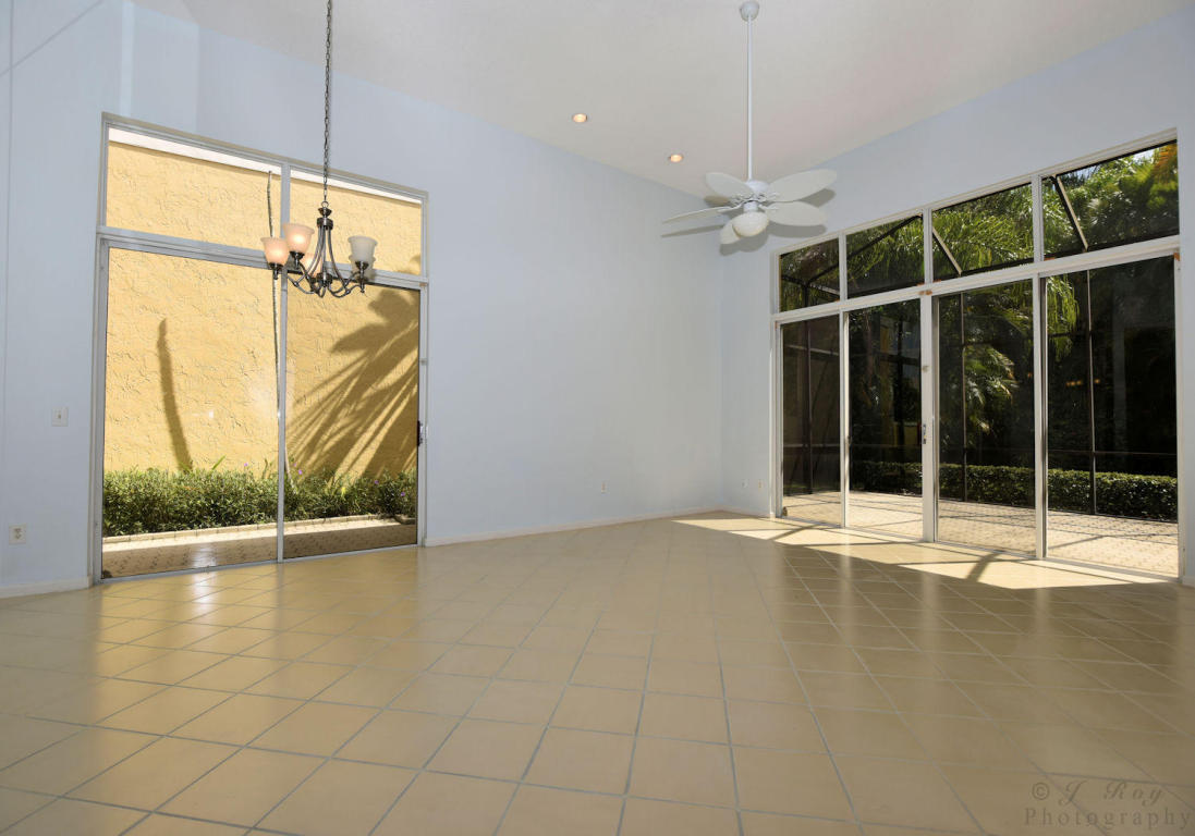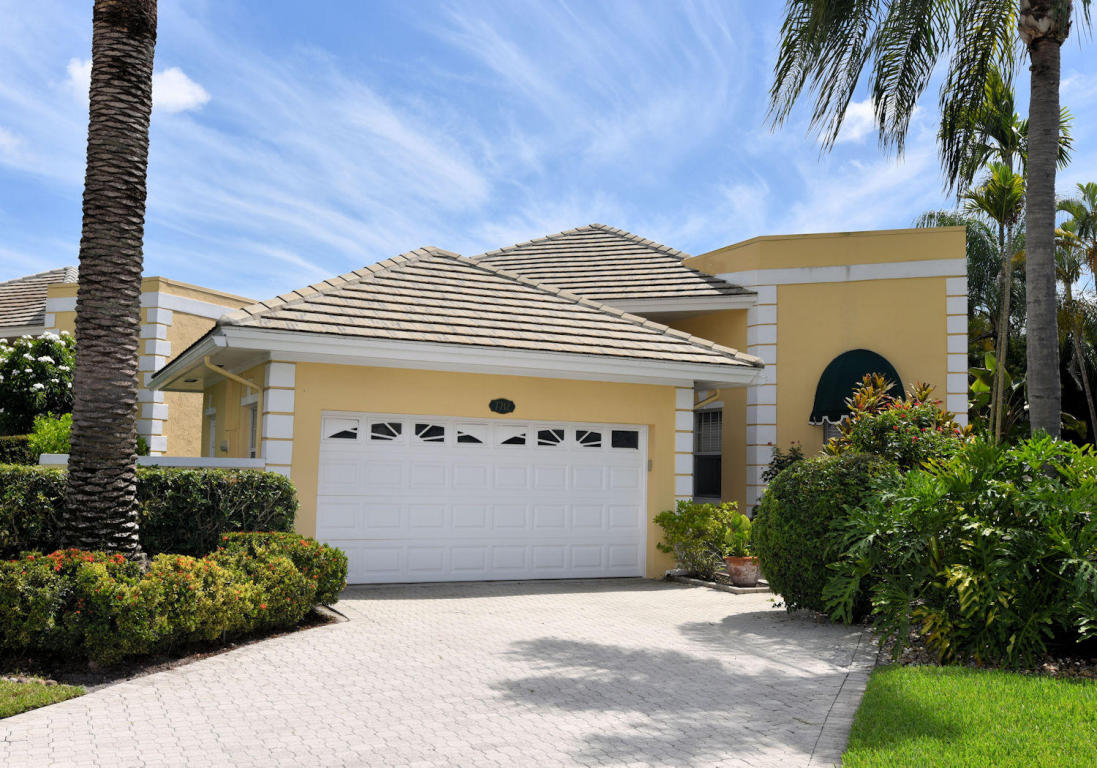 beautiful home with 2 bedroom 2 bath with a den or 3rd bedroom and 2 car garage home located in the Palms section of Boca Pointe. Front entry way, skylights, kitchen updated in 2014 with new cabinets, beautiful granite counter tops and stainless steel appliances, newer wood floors in bedrooms, replaced a/c 2014, central vacuum, vaulted ceilings lush tropical back with huge screened patio. Pristine condition, Steps community pool.