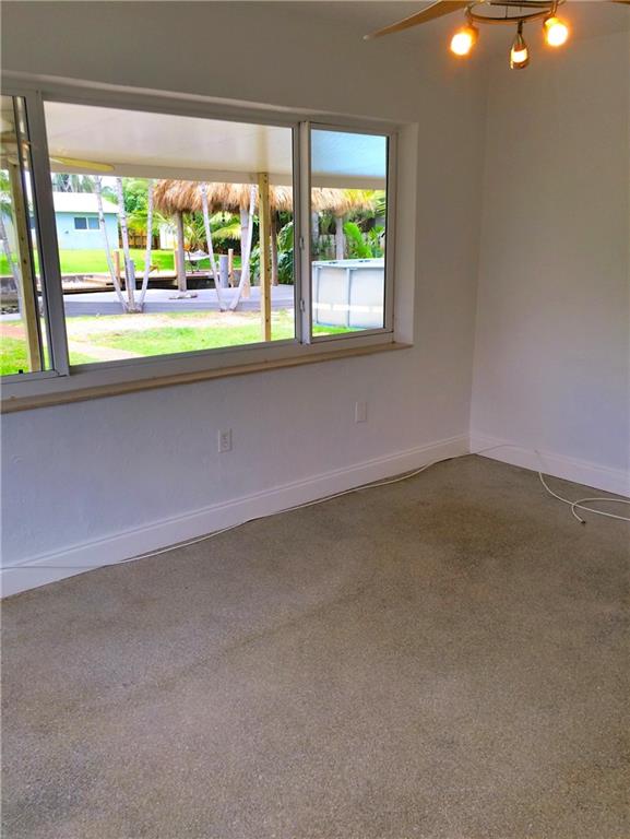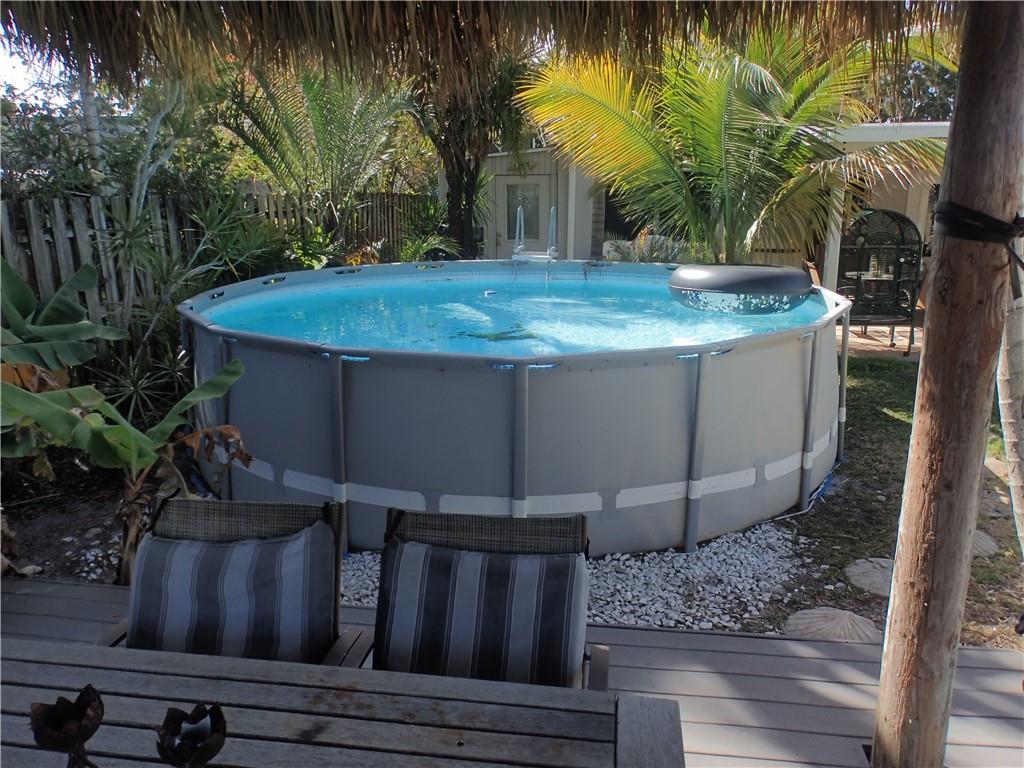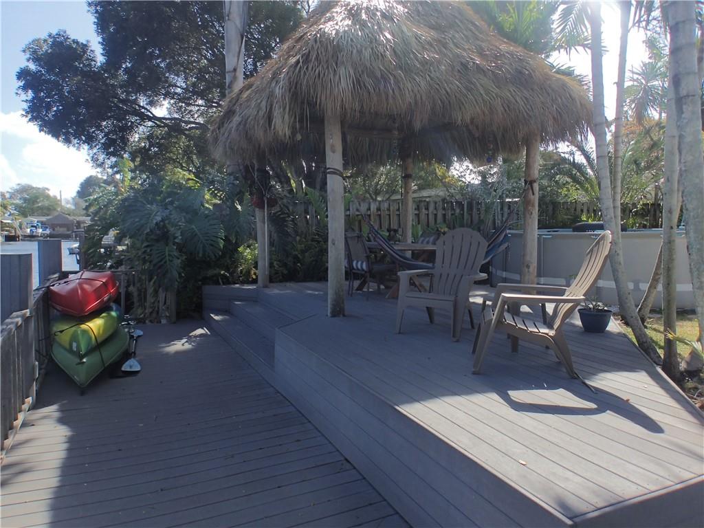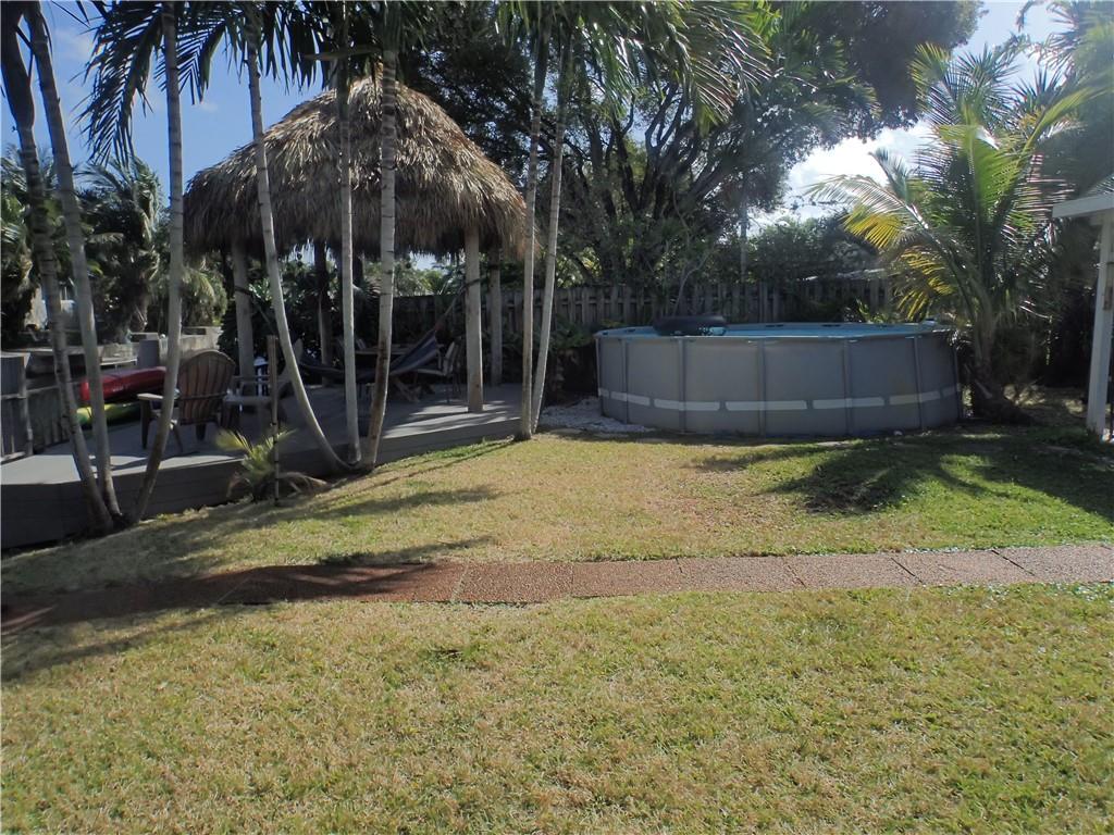 Boaters Dream! Waterfront property with 50 foot boat dock and ocean access. Beautiful 3/2 home with a den that can be used as a 4th bedroom. Above ground pool with a large covered patio and separate deck with an amazing tiki hut, great for entertaining. Hurricane impact windows throughout. Kitchen has SS appliances. Tile floors in the kitchen & dining room. Wood floors throughout the living area,2nd & 3ed bedrooms. Terazzo floors in the master bedroom. Remodeled master bath. See brokers remarks.