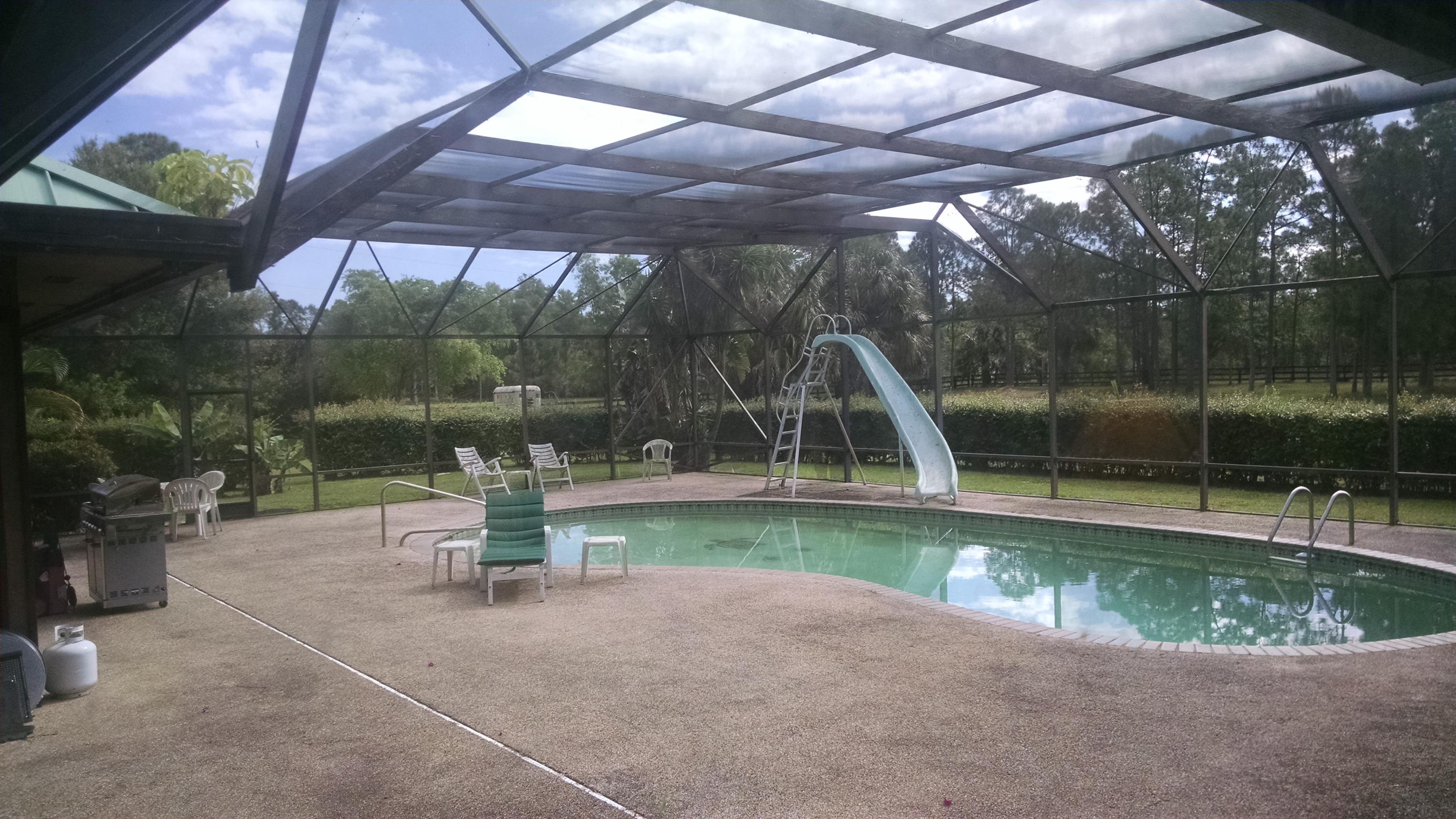 This equestrian property with its awesome location a street away from Caloosa's central 32 acre park. This 3 bedroom 3.5 bath larger home with 9 yr old metal roof and larger screened freeform pool. Includes formal dining room and living room with fireplace. Kitchen has nice view of screened pool and back yard paddocks and barn. Bonus studio room with full bath has separate entrance and kitchenette which is a real plus! Property is fully fenced and has 3 stall barn with 3 paddocks. Front of property has nice pond with a pond liner that keeps it at the same level year round!