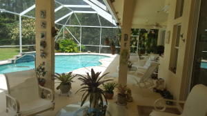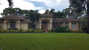 Pride of ownership shows in this 3 bedroom, 2 bath custom built home in The Acreage. Built in 2001 this home is located on a quiet paved road and sits on 1.25 acres of manicured property. Enjoy the screened in free form pool with waterfall, full size shed with electric, two car garage with tons of storage and work bench, interior laundry room, eat in kitchen, Den/ office with a nice front yard view, large master bath with huge shower. The back porch offers plenty of shade to sit and enjoy the pool and country views. This home has lots of storage and the high ceilings give it a wonderful open feel. The house has a water treatment system that was recently replaced. Some of the furniture is available for sale.