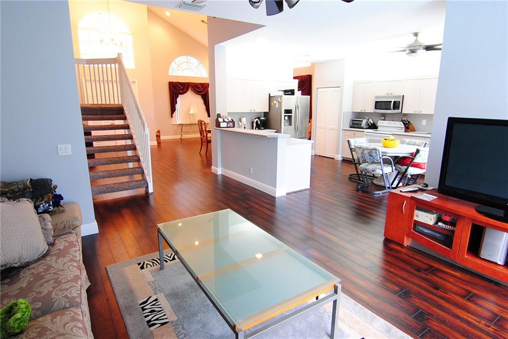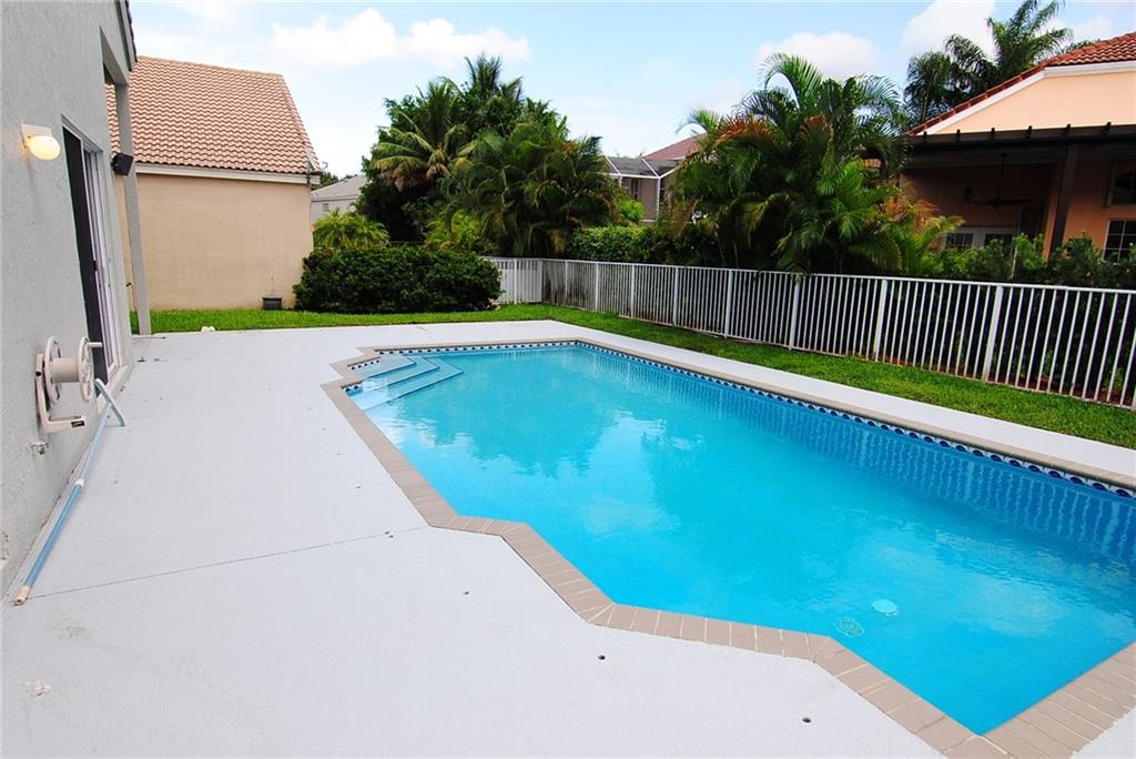 Beautiful 5 bed, 3 and half bath home with a gorgeous outdoor area and sparkling pool. Largest model, with volume ceilings and a very spacious and open floor plan. Laminate wood in the living area wraps around the expansive kitchen. Upstairs has 4 nice size bedrooms, an updated bathroom, and a wonderful loft area. Hurricane panels. Fenced in backyard. Well maintained, neat and clean. Man gated community. Top rated Parkland schools. Close to shops, house of worship, entertainment, 441, and turnpike.