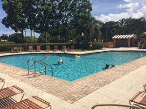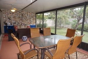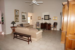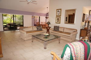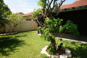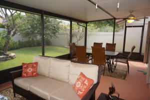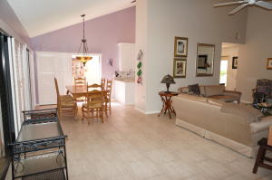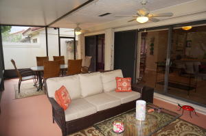 Gracious 3BR/2BA home to live and entertain in. Light tile floors in living areas and laminate in bedrooms. Open areas for living and dining combined with vaulted ceilings, create a spacious feeling. Third bedroom has an upstairs loft with built in desk and shelves. A wall of sliding glass doors separate the living area from the extended screened in patio; and the lushly landscaped private fenced backyard beyond. Beautiful planted areas surround the home. Home is immaculate and well cared for. New roof in 2012. Updated kitchen: newer cabinets,counters, and stainless steel appliances. Low HOA fee includes basic cable, lawn care and reserves. Popular Saratoga Pointe is close to Store-filled Plazas, Restaurants, I-95, Palm Beach Outlets, CityPlace and Palm Beach Int'l Airport.