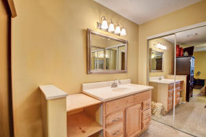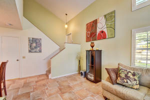 As you enter this large, split floor plan, bright corner unit, you will immediately notice the tall ceilings, gorgeous plantation shutters and sliding doors to the screened in patio; it's perfect for indoor/outdoor living, with direct access to the kitchen too. A half bathroom for guests complete the downstairs living. When you make your way up the stairs you will find the first bedroom, with it's own private bathroom across the way and a master suite with ample closet space. This home sits on a corner lot with a large grassy area immediately adjacent to it. This unique and beautiful home is being offered furnished so all you need to bring is your toothbrush! Great central location, resort style living without the membership fee