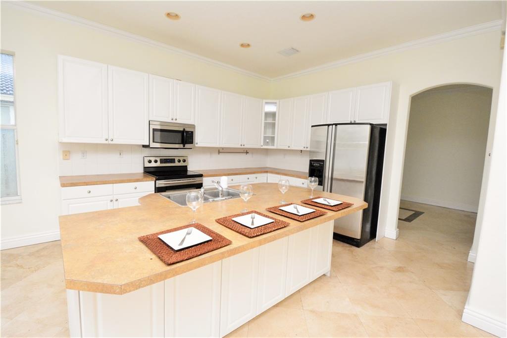 BEAUTIFUL 2-STORY HOME IN THE RESORT-STYLE COMMUNITY OF SUNSET LAKES. LOWER LEVEL FEATURES TRAVERTINE FLOORS WITH BEAUTIFUL MARBLE INLAYS. UPPER LEVEL IS ALL NEW WOOD FLOORS. KITCHEN IS EXPANSIVE WITH LARGE EAT AT ISLAND, STAINLESS STEEL APPLIANCES, HUGE PANTRY AND BREAKFAST AREA. OVERSIZED LOT HAS 2 PATIOS, PRIVACY FENCE AND PLENTY OF ROOM FOR A POOL.