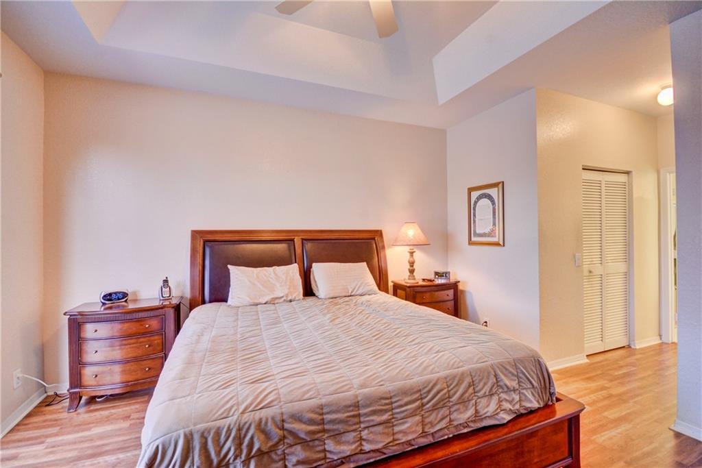 Its a great day to buy this Mayfair beauty! Amazing lake views from your back patio! This house features a split bedroom plan, newer A/C & water heater, soaring volume ceilings, beautiful laminate floors in bedrooms, tile through-out living areas, new kitchen appliances and new washer/dryer. Low monthly maintenance includes manned gate, 24hr security, common area landscaping, pool, community pool, clubhouse & playground. Close to parks, shopping and dining.