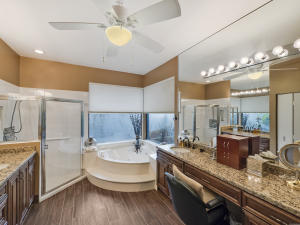 RECENT UPDATES! Great golf course home with expanded lot and 3-car garage in Stonebridge Country Club... lovingly maintained, this home is move in ready...Features: 3 newer ACs, newer roof, updated kitchen with granite counters, wall oven, smoothtop stove, stone marble backsplash, built in desk and under cabinet lighting. Large rooms with cathedral ceilings. Living Room and Dining room have custom granite built-ins providing lots of storage. The office has pocket doors, built in desk and plantation shutters. The master bath has new tile, vanities and granite counters. Master bedroom has built in (more)