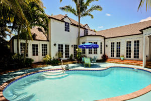 Beautiful 1940s colonial style home with 2000 square foot addition in 2007. House wraps around pool and deck. 3 bedrooms on 2nd floor in front of home. Living room, dining room, huge kitchen and family room/entertaining area on first floor. Large master bedroom in rear of home. All rooms surround the pool, with french double door access to pool from each room. Features include hardwood and tile floors, gas and wood burning fireplaces, impact glass throughout, separate mud/laundry room. Coconut and palm trees surround the home. Pool resurfaced, with newer multi-speed pool pump. Pristine condition. Quiet location with convenient access to 95, downtown, airport and beach. 2 block stroll to the intracoastal.