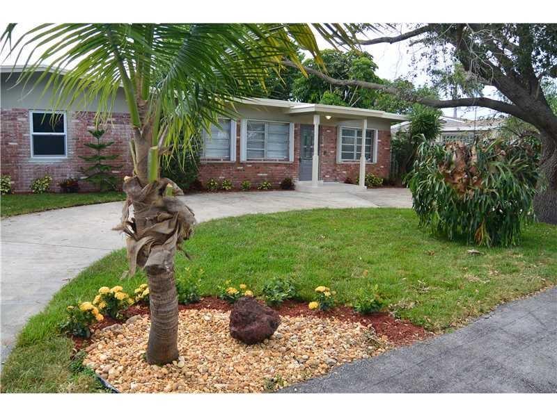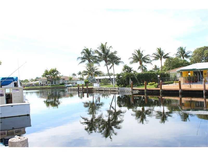 Waterfront property!! Magnificent modern house in immaculate turnkey condition.Direct ocean access with only one fixed bridge at Federal Hwy.Brand new roof.Gorgeous 32" porcelain tile floors throughout. 4 bedrooms, 4 full bathrooms, this home features 2,257 sq/feet under air, open concept, natural light, family room and dining area overlooking the canal, exquisite custom-made Italian kitchen, master suite with bathtub/ shower New wood 50X7 ft boat dock clearance of fixed bridge is 12.1ft Fenced backyard