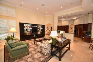 In Lake Estates section: Ideally situated on over 1/2 acre of lakefront property, this one-story 4 bedroom + office home is stunning. Marble floors, coffered ceilings, and exquisite finishes abound. The living room with fireplace is enhanced by floor-to-ceiling windows for natural light & unobstructed views of the beautiful lake. Adjacent to the living room is a formal dining room and a luxurious wood-paneled office with custom cabinets. The kitchen opens to a breakfast area & a large family room. An anteroom leads to the spacious master suite which has a sitting area & two large custom walk-in closets. All guest bedrooms are en-suite. Outside are a screened-in lanai with summer kitchen, a resort-style pool with gazebo, and open & covered patio areas for enjoying the expansive lake views.