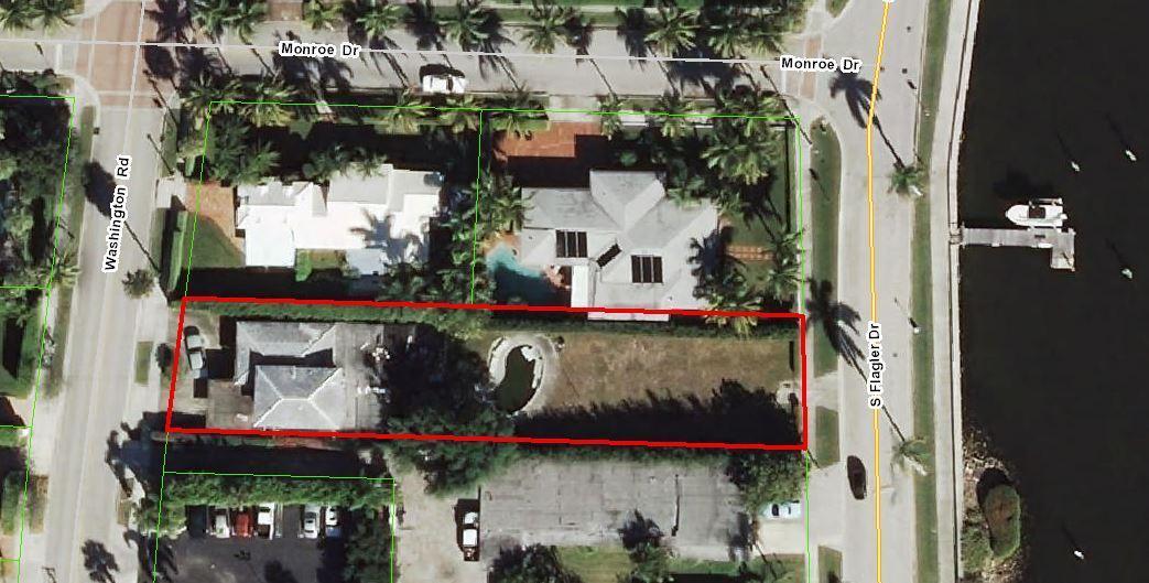 PROPERTY EXTENDS FROM WASHINGTON TO FLAGLER..ONE OF THE LAST EXISTING LOTS AVAILABLE ON FLAGLER....BUILD YOUR DREAM HOME....CODE ALLOWS UP TO A 5800 SQ FOOT HOME...EXISTING HOME CAN BE RENOVATED TO 1500 SQ FOOT GUEST HOUSE OR GARAGE....PROPERTY INCLUDES 150 FEET OF RIPARIAN RIGHTS ...DOCK PERMIT AVAILABLE ..1500 SQ FT DOCK PERMITTED A RARE FIND ...DIRECTLY ACROSS THE WATER FROM MAR A LAGO AND BIRD SANTUARY
